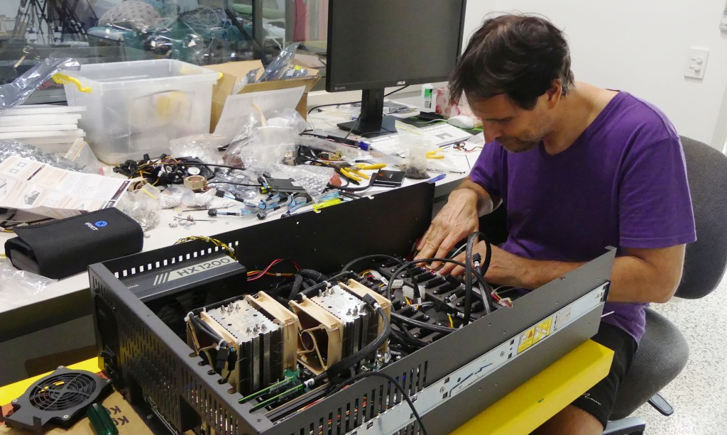 Jesus is also now building new, smaller servers which he can remote control (16 core XeonD processor, 128GB RAM, 80TB storage, video rendering) which cost around $12,000 AUD each. We intend to send these to Gene when his life is back to normal and his home is repaired, which may take some months or longer. While we have no servers in the USA, we will be unable to upload data to the internet, unless the data sizes are small enough to do it directly using our connections in Australia.